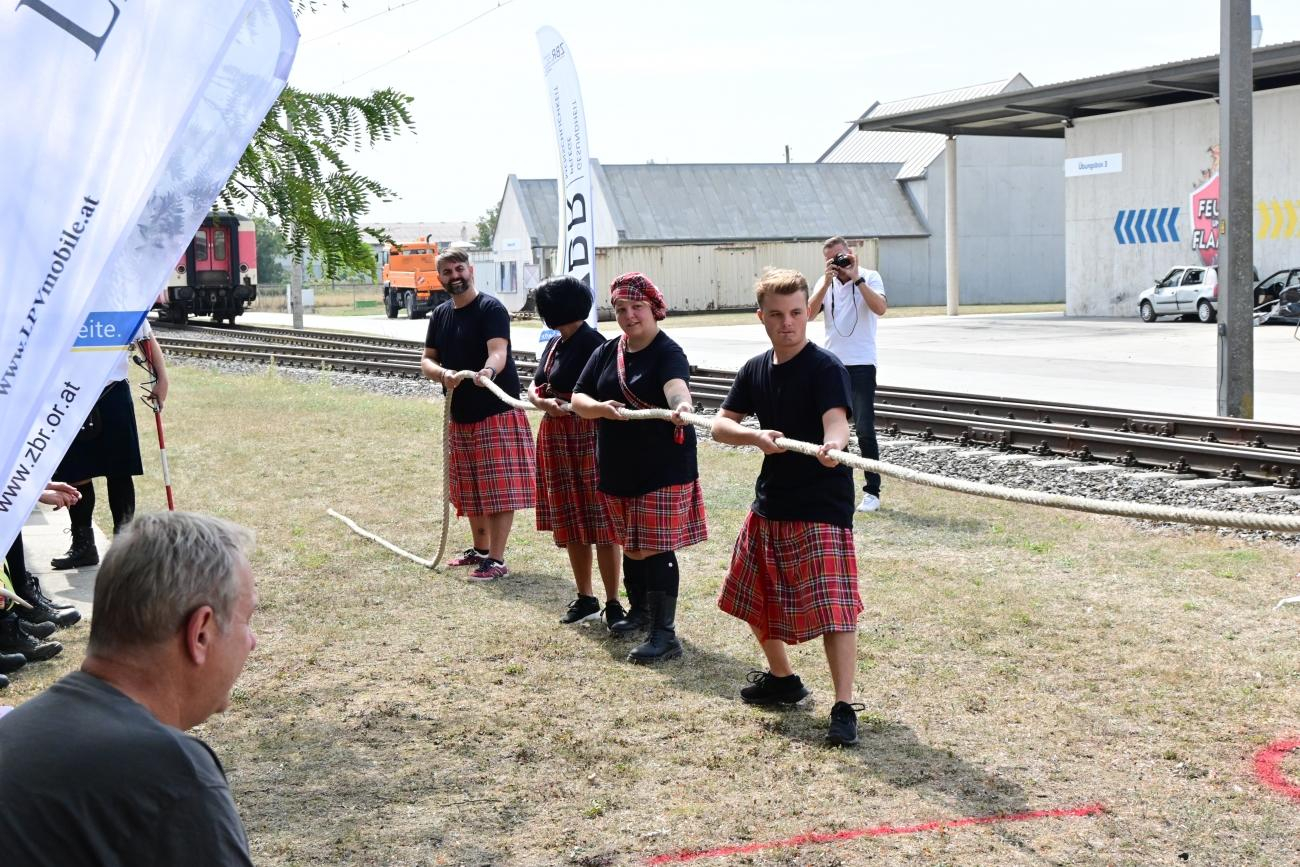 Der ZBR und die LPV veranstalteten am 6. September 2024 die 8. Lowland Games im NÖ Feuerwehr- und Sicherheitszentrum Tulln. 14 Clans aus den unterschiedlichsten Bereichen des NÖ Landesdienst gingen in traditioneller Kleidung und mit selbstgebastelten Standarten (Zugehörigkeitszeichen) an den Start. Darunter auch drei Teams aus den Pflege- und Betreuungszentren Mödling, St. Peter in der Au und Raabs an der Thaya. Die Clans haben sich in den verschiedenen Disziplinen wie Eisenbahnwaggon-Schieben, Steinwerfen und Zillenfahren gemessen.