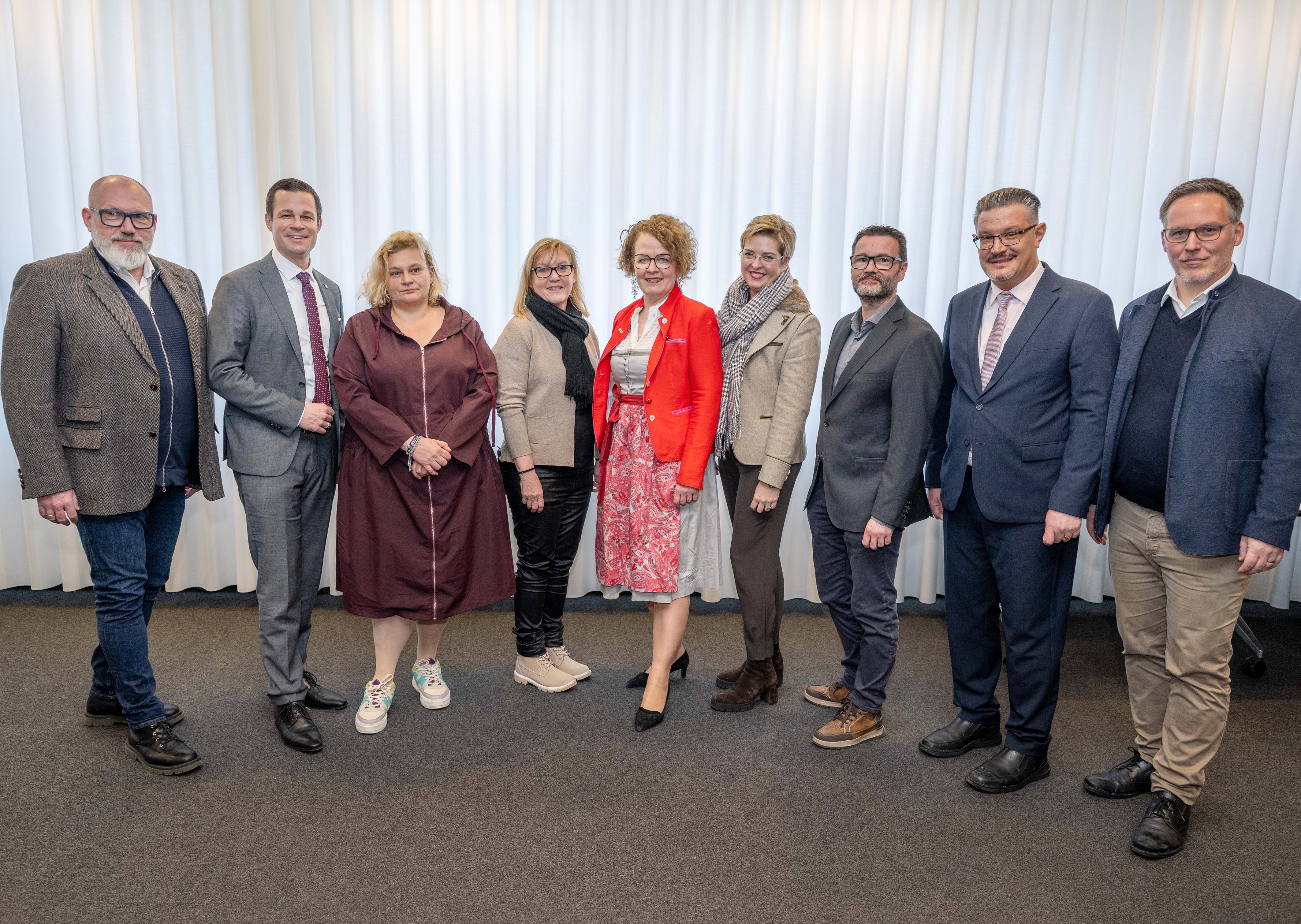 Gruppenfoto (© NLK Khittl v.l.n.r.): Geschäftsführer Christoph Gleirscher (Hilfswerk NÖ), Bildungsdirektor Karl Fritthum, Vorständin Elisabeth Bräutigam (NÖ LGA), Geschäftsführerin Sandra Kern (AMS NÖ), Sozial-Landesrätin Christiane Teschl-Hofmeister, Susanne Gröschel (NÖ LGA, Leitung Strategie und Qualität Pflege), Vorsitzender des Zentralbetriebsrates Gottfried Feiertag, Gruppenleiter Filip Deimel und Abteilungsleiter Helmuth Sturm.