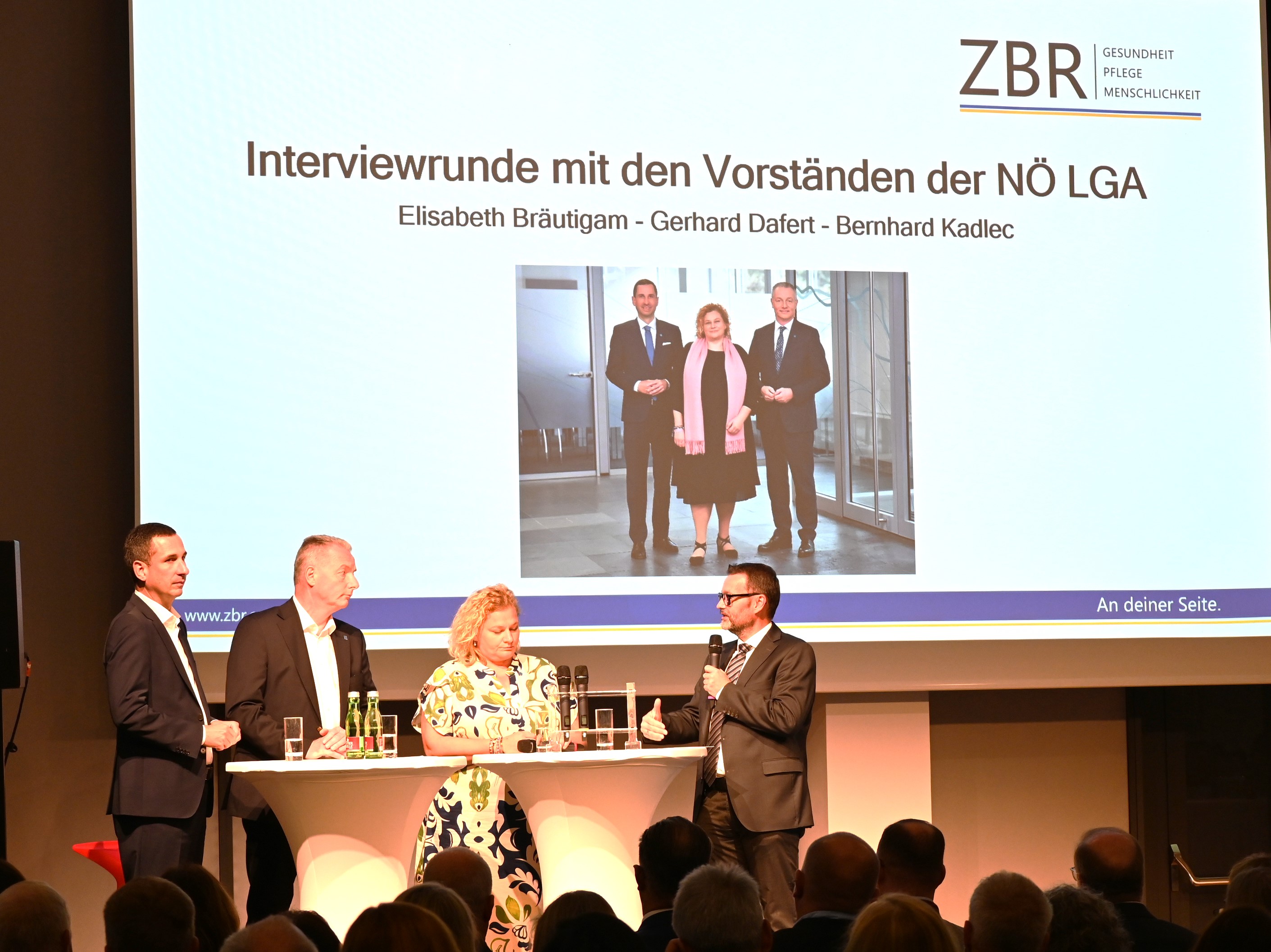 Die Interviewrunde mit den Vorständen Mag.a Dr.in Elisabeth Bräutigam, MBA, Mag. Gerhard Dafert und Mag. Dr. Bernhard Kadlec ist bereits ein traditioneller Bestandteil der Betriebsräteversammlung.