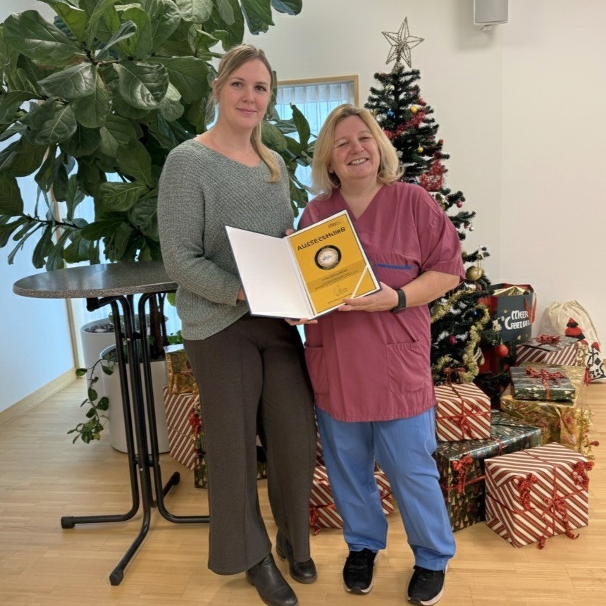 Die neue Vorsitzende des Betriebsrates Tamara Vyborny überreicht ihrer Vorgängerin Silvia Valek die ZBR-Auszeichnung in Gold als Zeichen des besonderen Dankes und der Wertschätzung.
